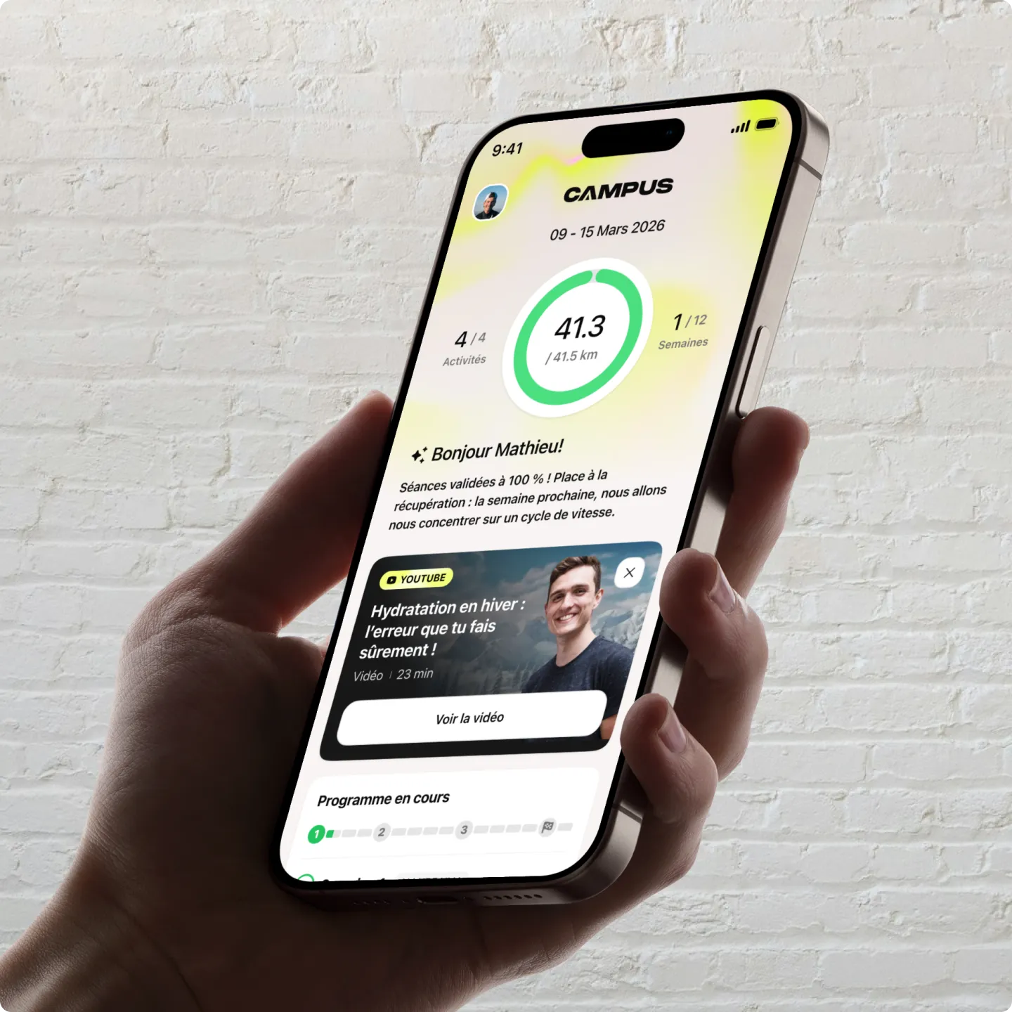 Follow-ups then refine the experience, taking into account personal context and external factors such as the weather, so that future sessions automatically adjust in pace and intensity.